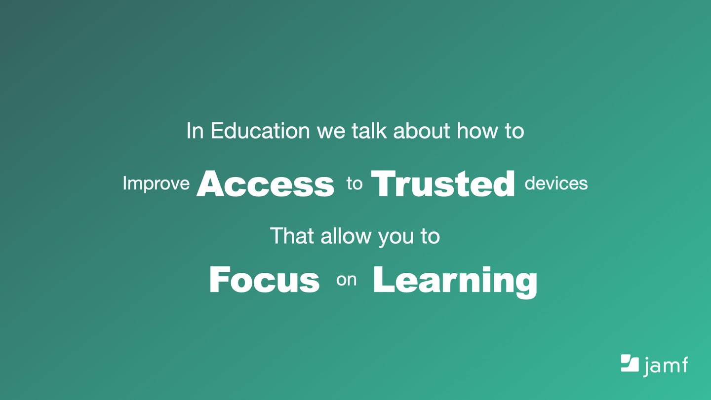 Jamf focuses on redefining the security space in education with a privacy-first standpoint that ensures student privacy. At Jamf believes in empowering the end users and that is highlighted by our three strand approach: Security, Privacy and Education. Students will only be fully safe when they are educated to know the dangers and risks when on any device.